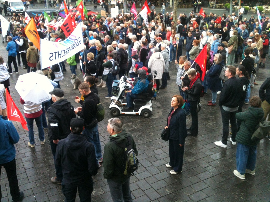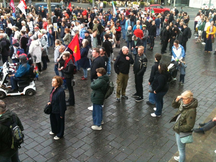 Ein paar Redebeiträge hörte ich mir an, dann kam Rednerin der "Falken". Ich mag die nicht. Hat auch so was von Vorstufe zu Paramilitärischer Vereinigung, Auf Demos sehe ich dauernd Leute von denen – schwarz vermummt, mit Schlagstockbewaffung, aggressivem Auftreten ...