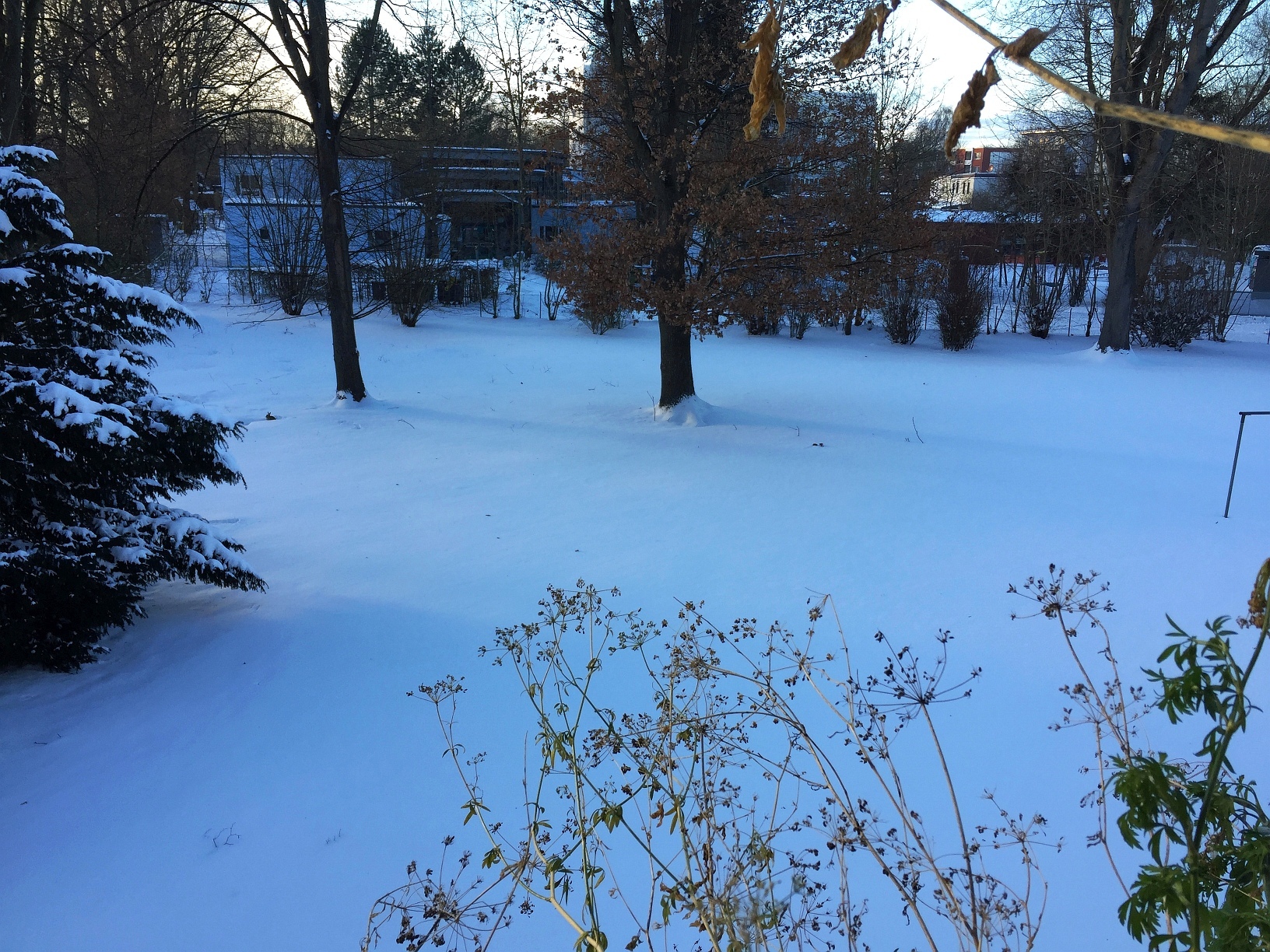 Freitag früh wehte mir auf meiner Morgenrunde im Hochspannungspark der Wchneesturm ins Gesicht – herrlich. Ich fühle so was gern. Und – auch die nächsten Tage durch tiefen Schnee stapfen– mir macht das Spaß. An der Hochspannungspark-”Hauptachse” kann man sich ja an den Laternen orientieren (heute früh war kein Weg mehr zu sehen), aber an den kleinen ap.org/way/147497963]Nebenwegen hatten unterschiedliche Leute doch unterschiedliche Erinnerungen, wo die nun waren 😉